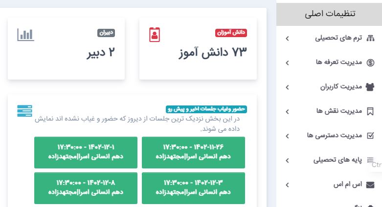 آشنایی با سامانه مدیریت آموزشگاه علمی - تنظیمات اصلی