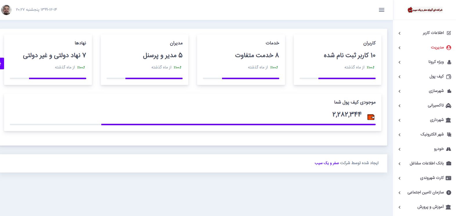 شرکت صفر و یک سیب یک شرکت در حوزه ارائه خدمات الکترونیک و فضای مجازی است که بنده به عنوان کارشناس برنامه نویسی تحت وب در این شرکت معرفی شده ام.